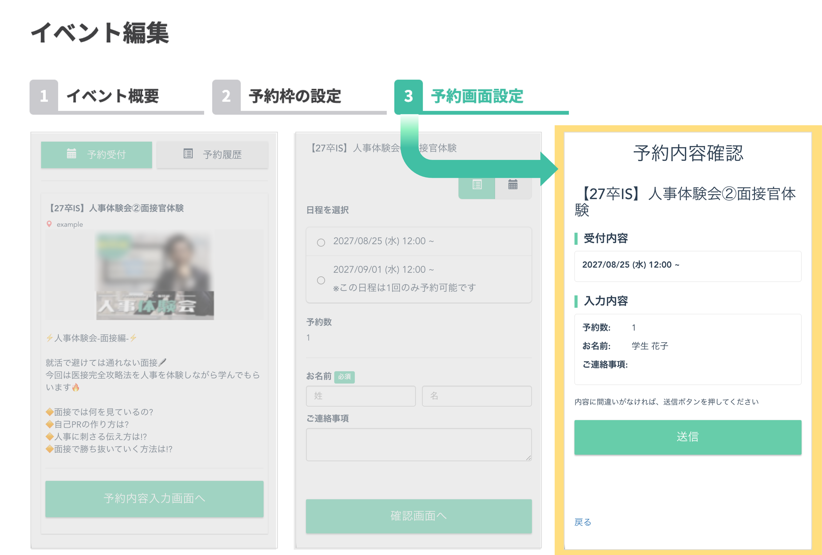 イベント予約作成のステップ