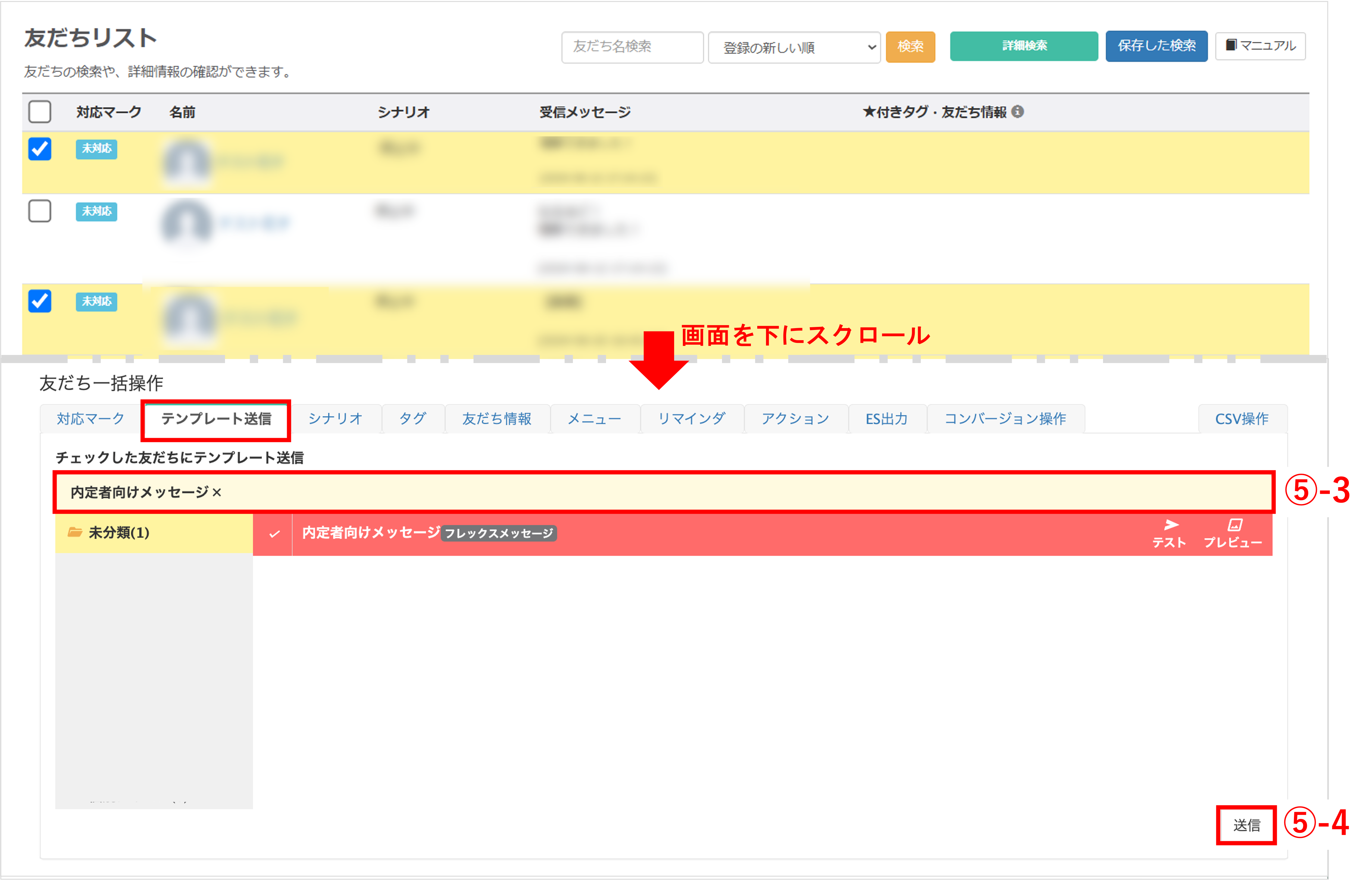 友だちリストから下にスクロールし、テンプレート送信』タブに切り替えます。