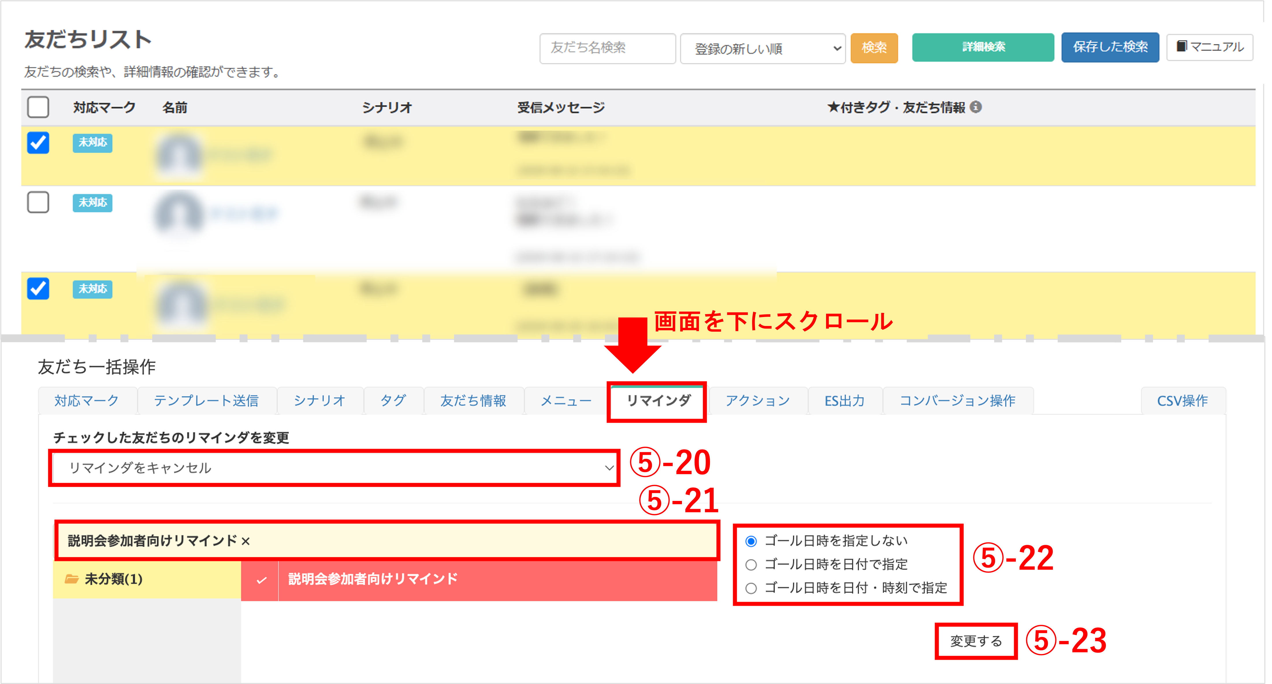 ⑤-20 『チェックした友だちのリマインダを変更』【リマインダをキャンセル】を選択します。
