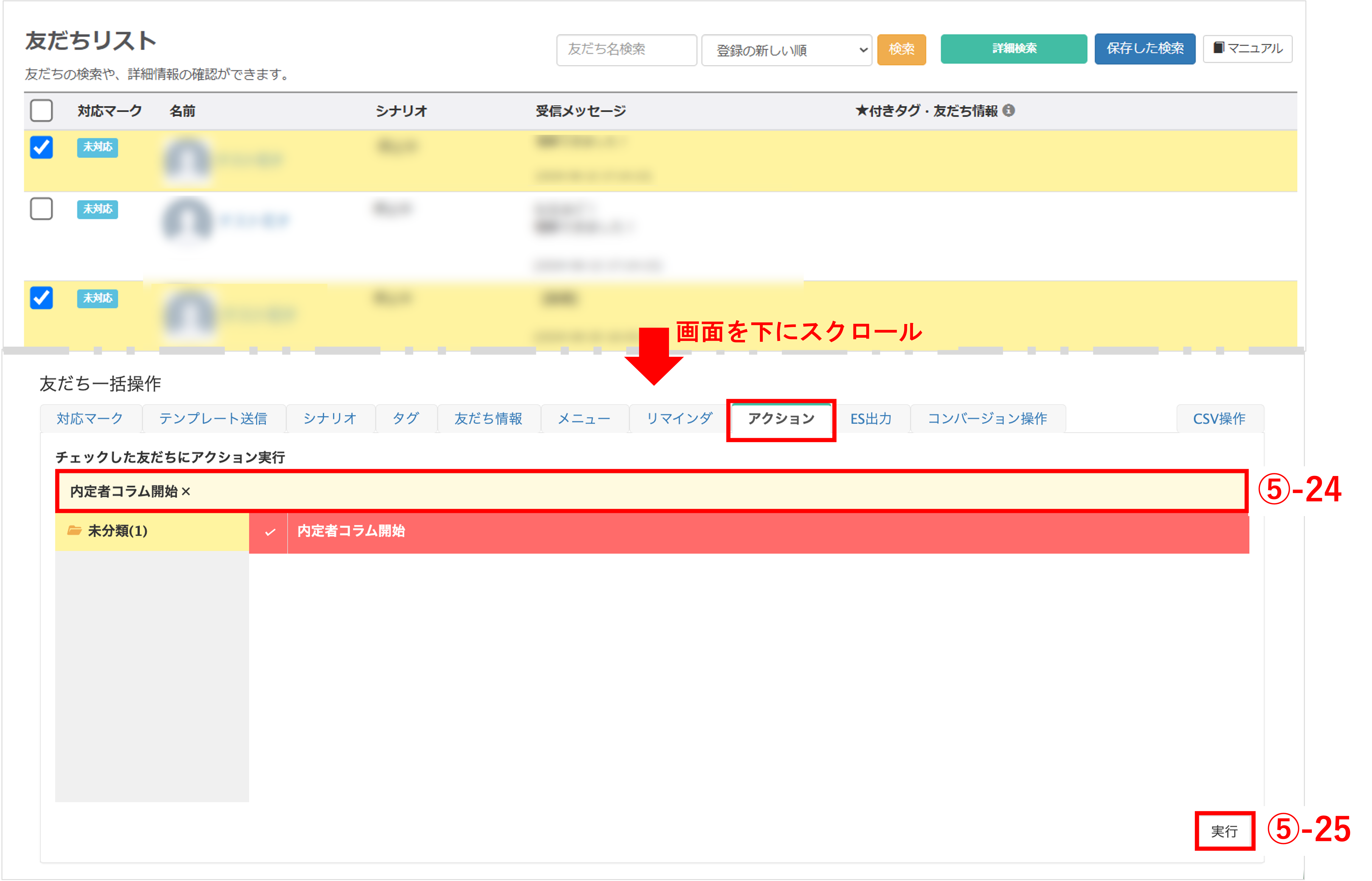 ⑤-29〔CSVエクスポート〕ボタンから友だちの情報をCSVファイル形式でエクスポートできます。
