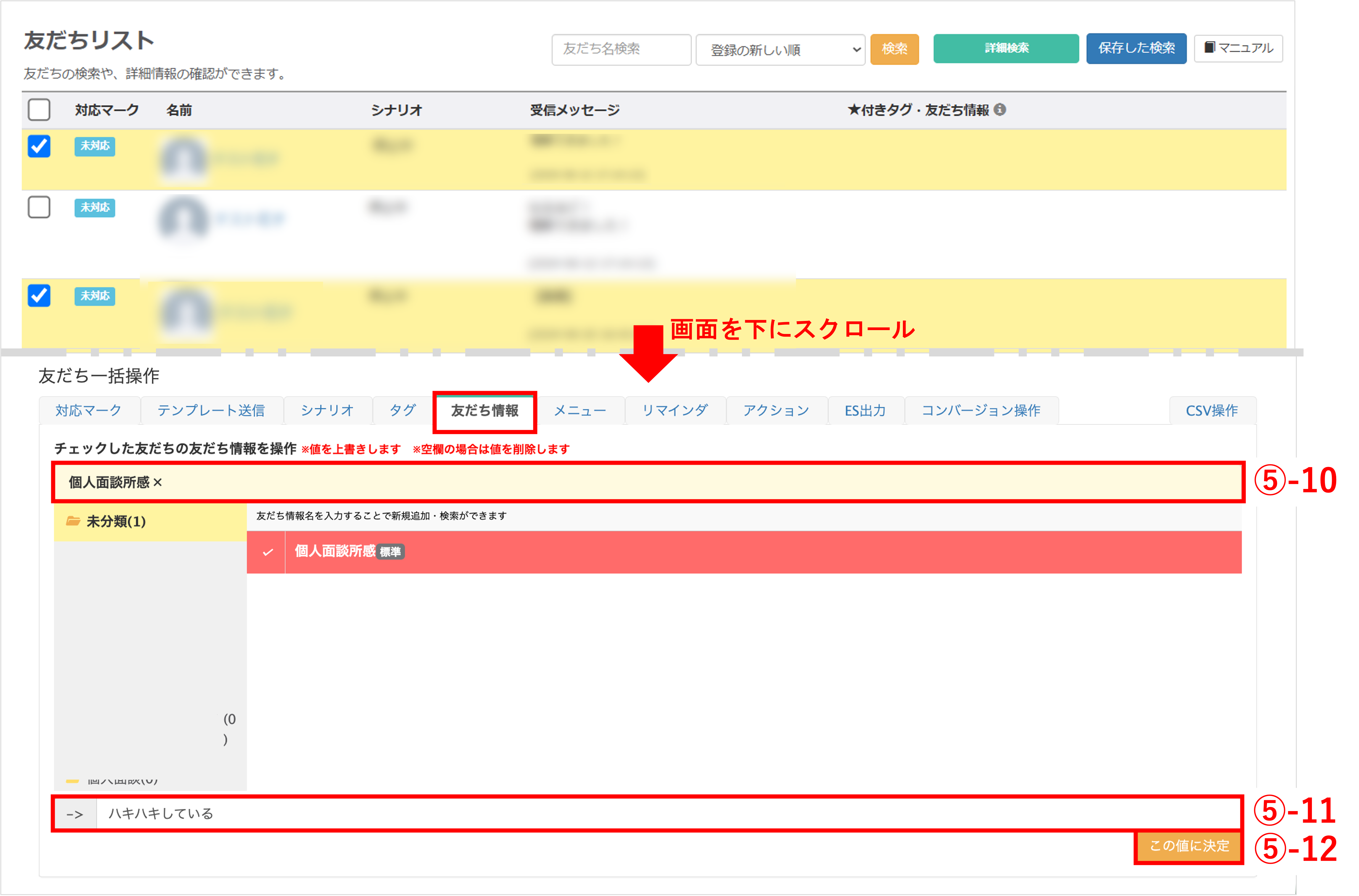 ⑤-11 友だち情報の種別が「標準」または「長文」の場合、変更後の値を入力します。