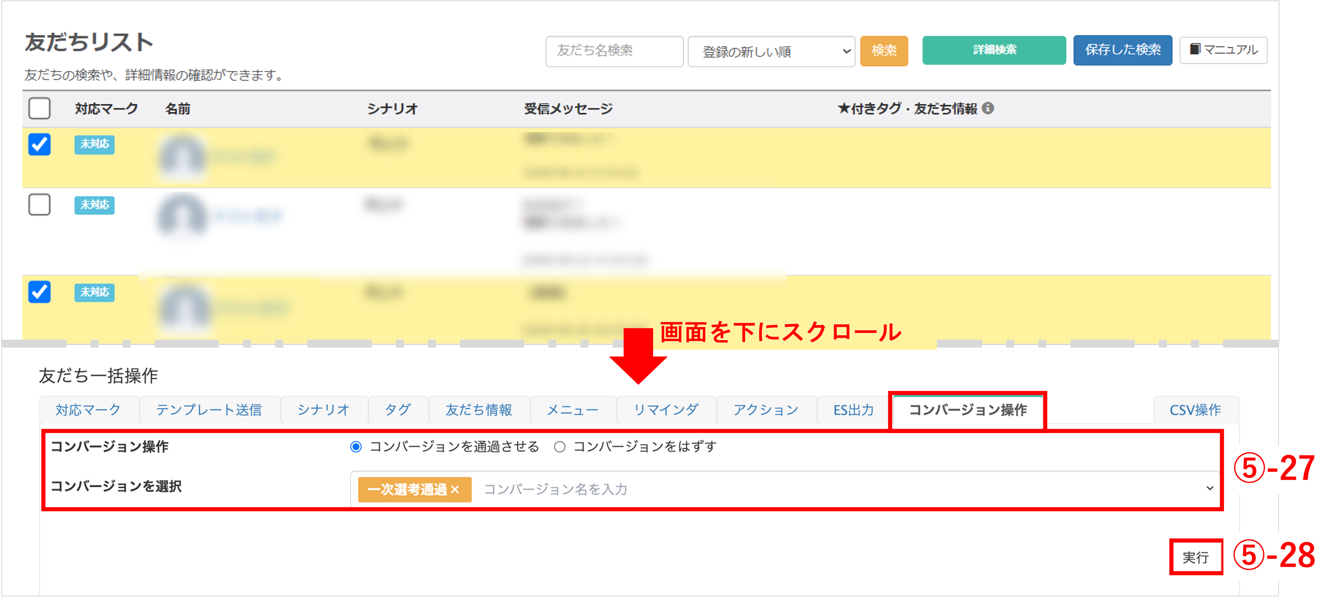 ★友だちリストから下にスクロールし、『コンバージョン操作』タブに切り替えます。