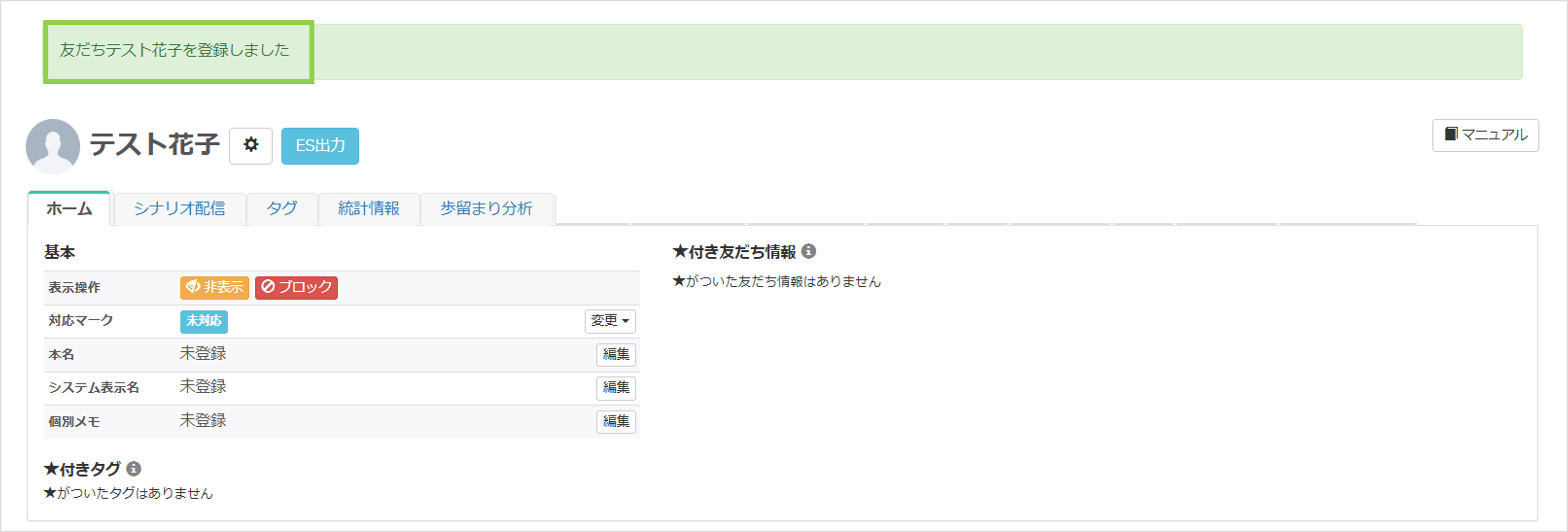 友だち追加画面で登録した情報をもとに、友だち登録が完了しました。