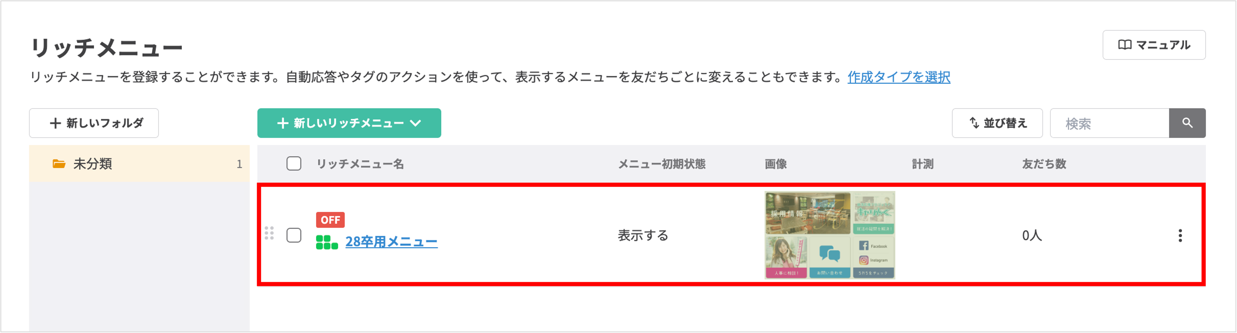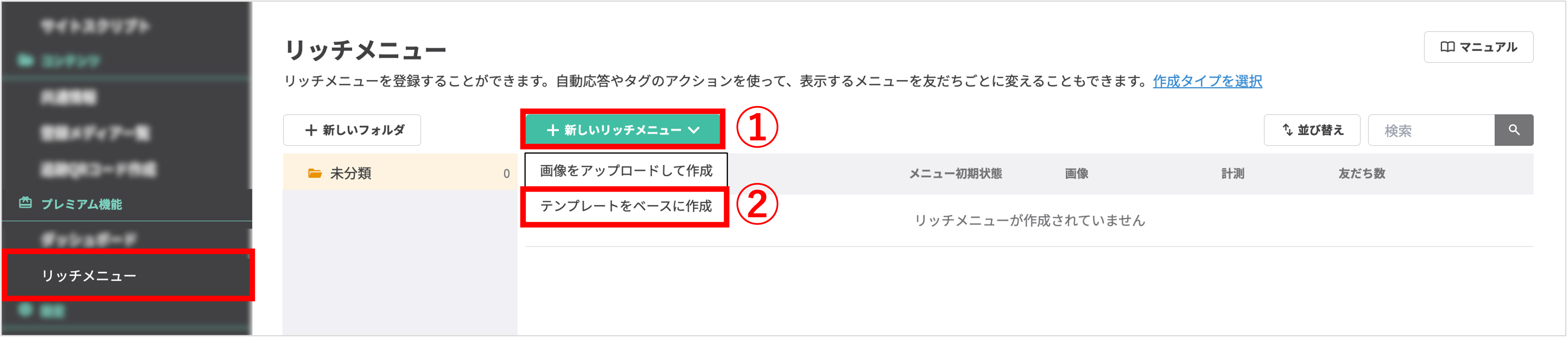 左メニュー>「リッチメニュー」をクリックします。