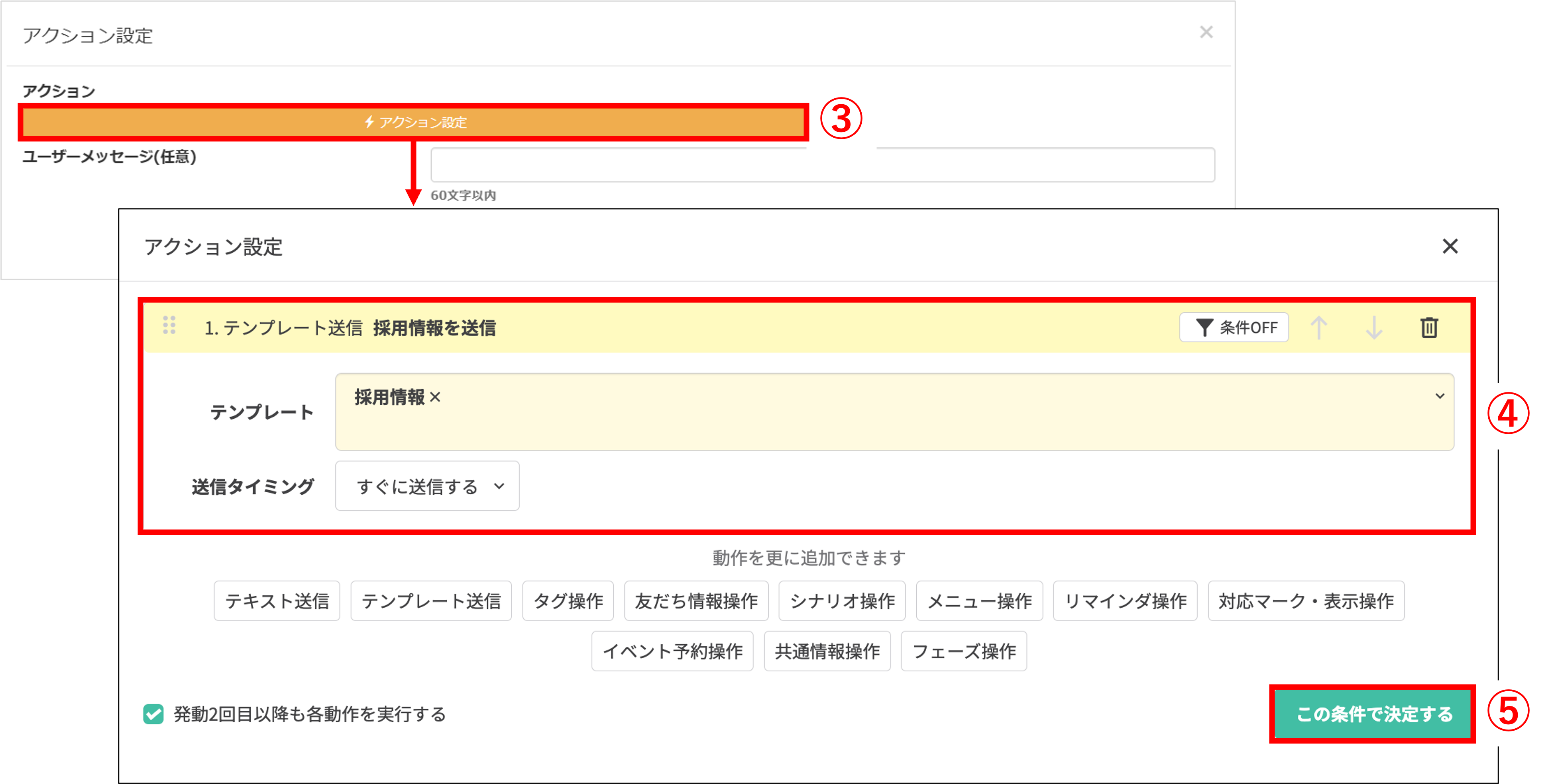 ③〔アクション設定〕ボタンをクリックします。