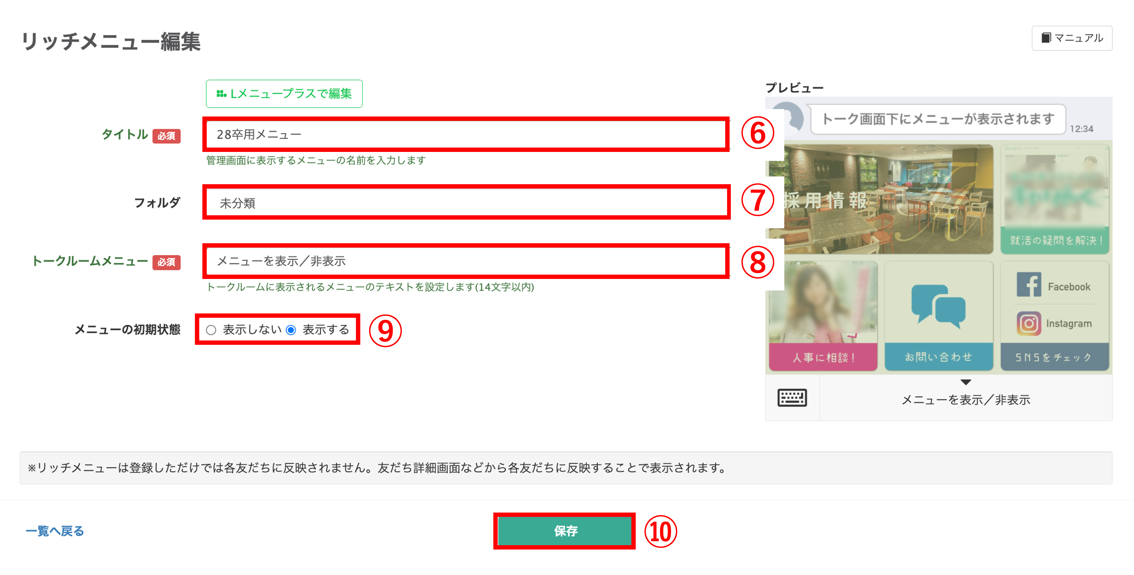 Lメニュープラスでのリッチメニュー作成画面に遷移します。