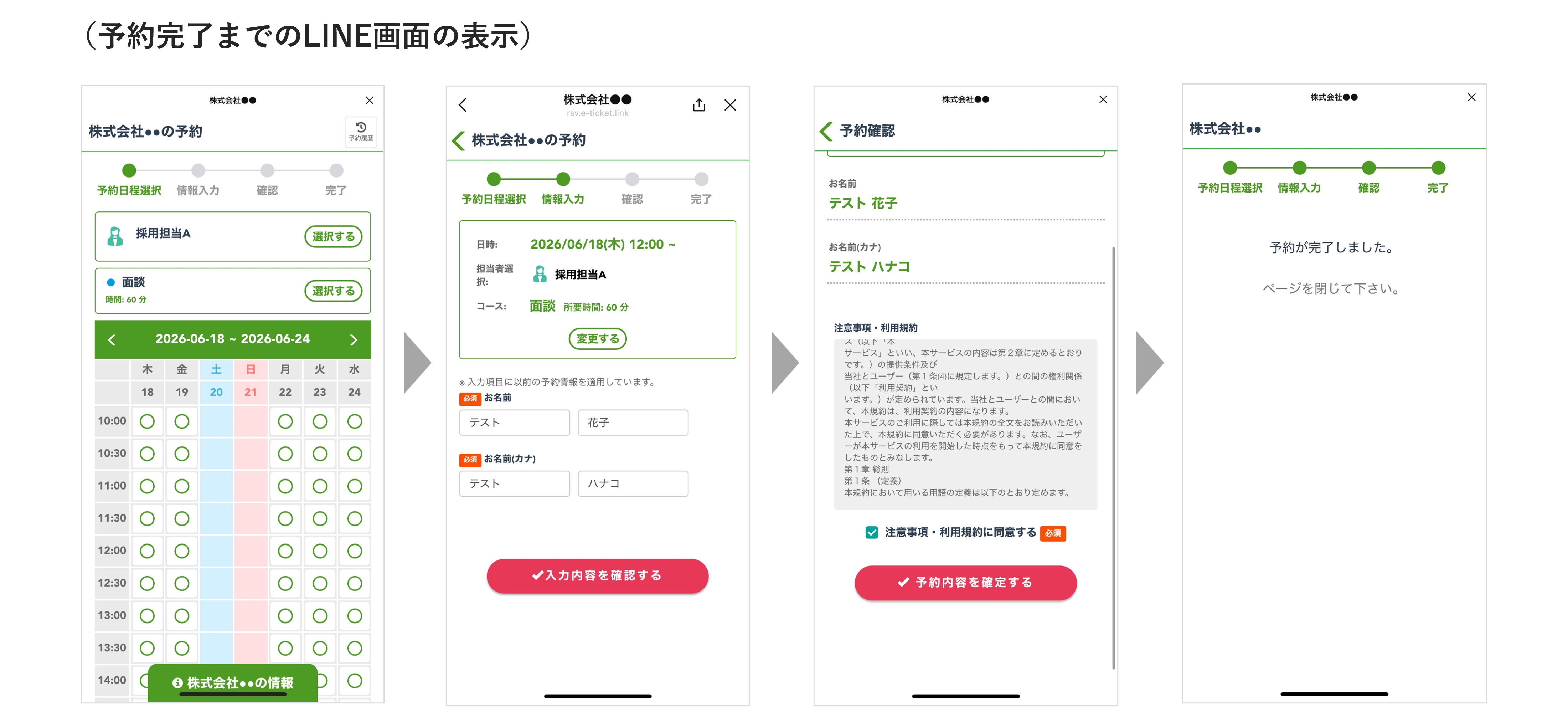 予約後には、予約枠(担当者)やコースに応じたメッセージ等を配信できます。