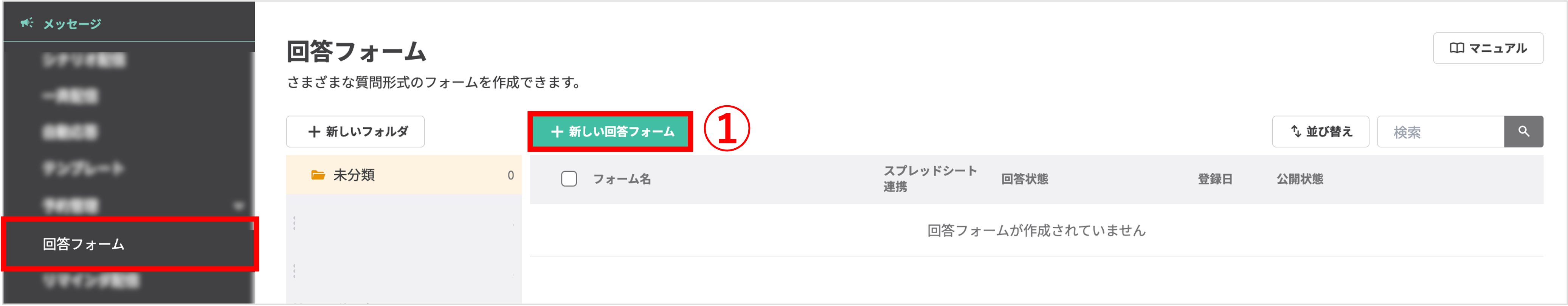 〔+新しい回答フォーム〕ボタンをクリックします。