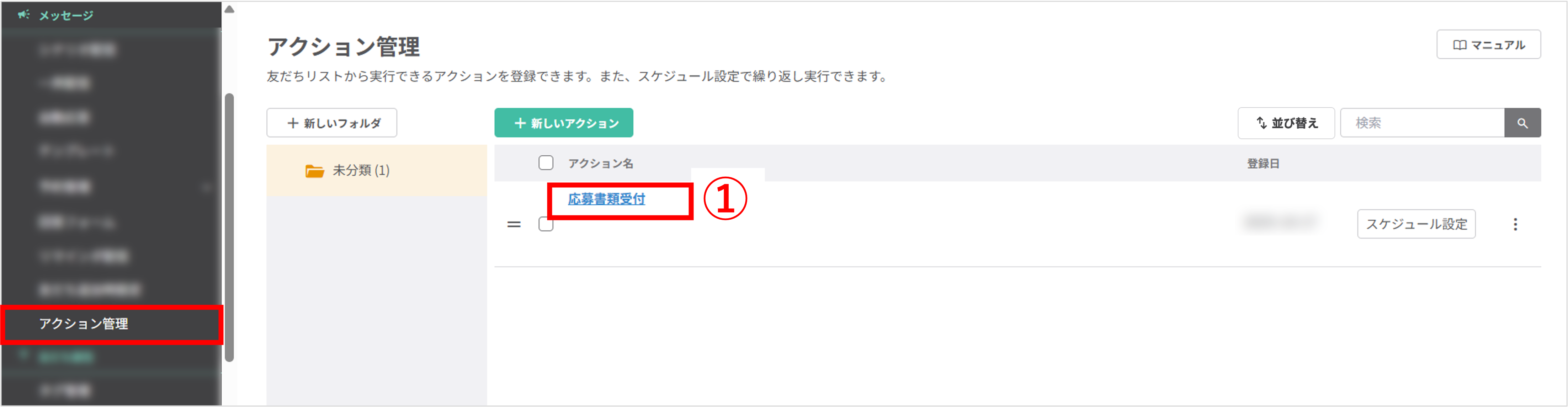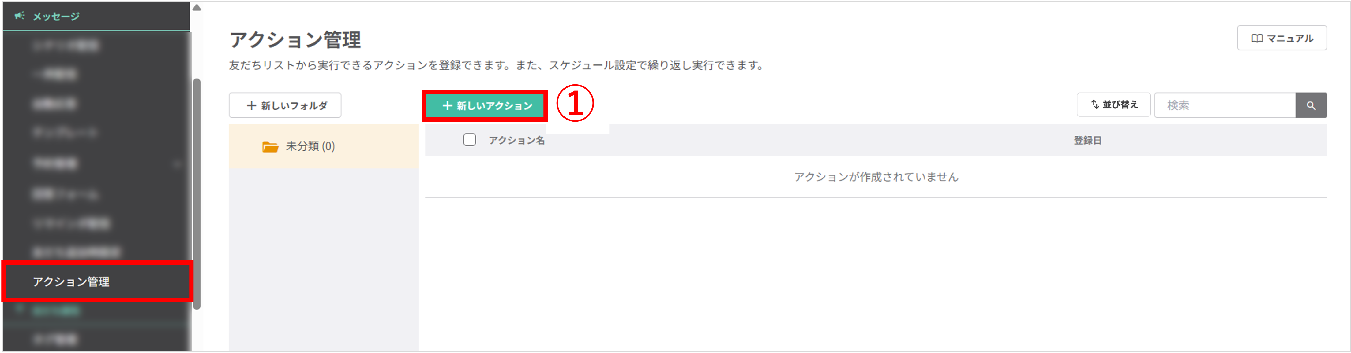 ⑤画面を下にスクロールし、『友だち一括操作』>『アクション』タブをクリックします。