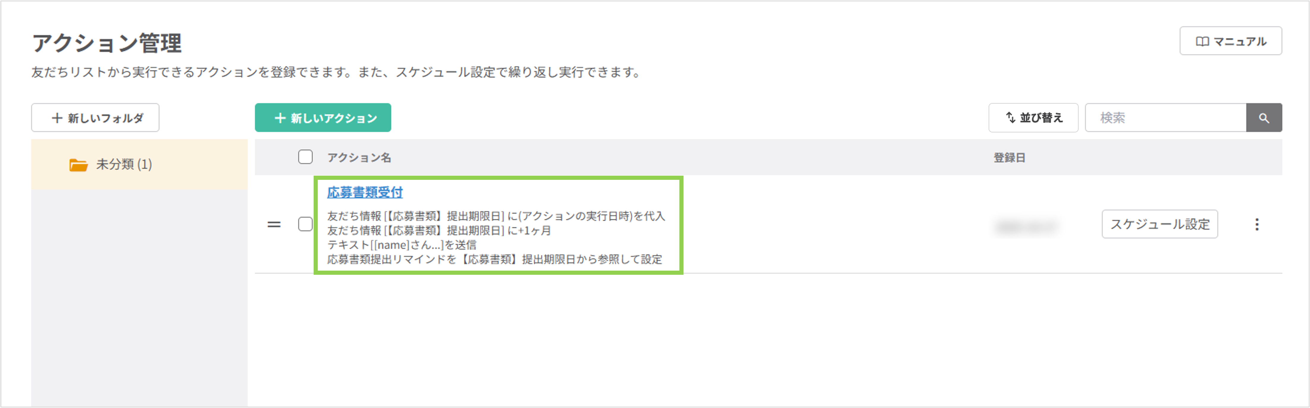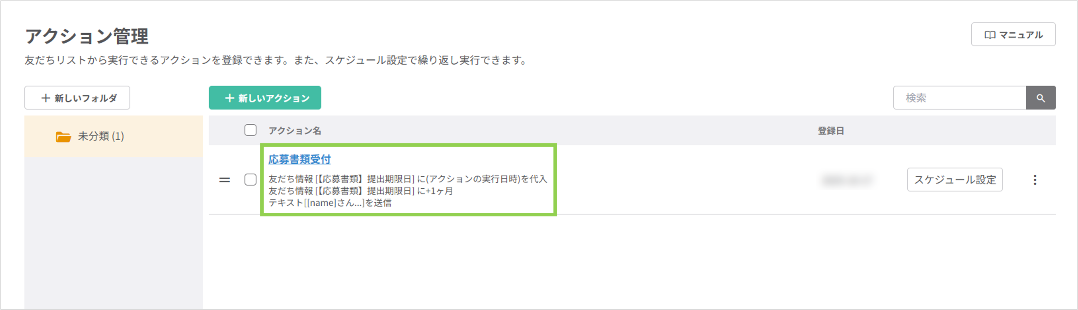 ★リマインダは登録した時点では配信されません。配信を開始するには、きっかけとなるアクションを設定するか、手動で開始する必要があります。ここでは、「アクション管理」で保存したアクションにリマインダを設定する方法を解説します。
