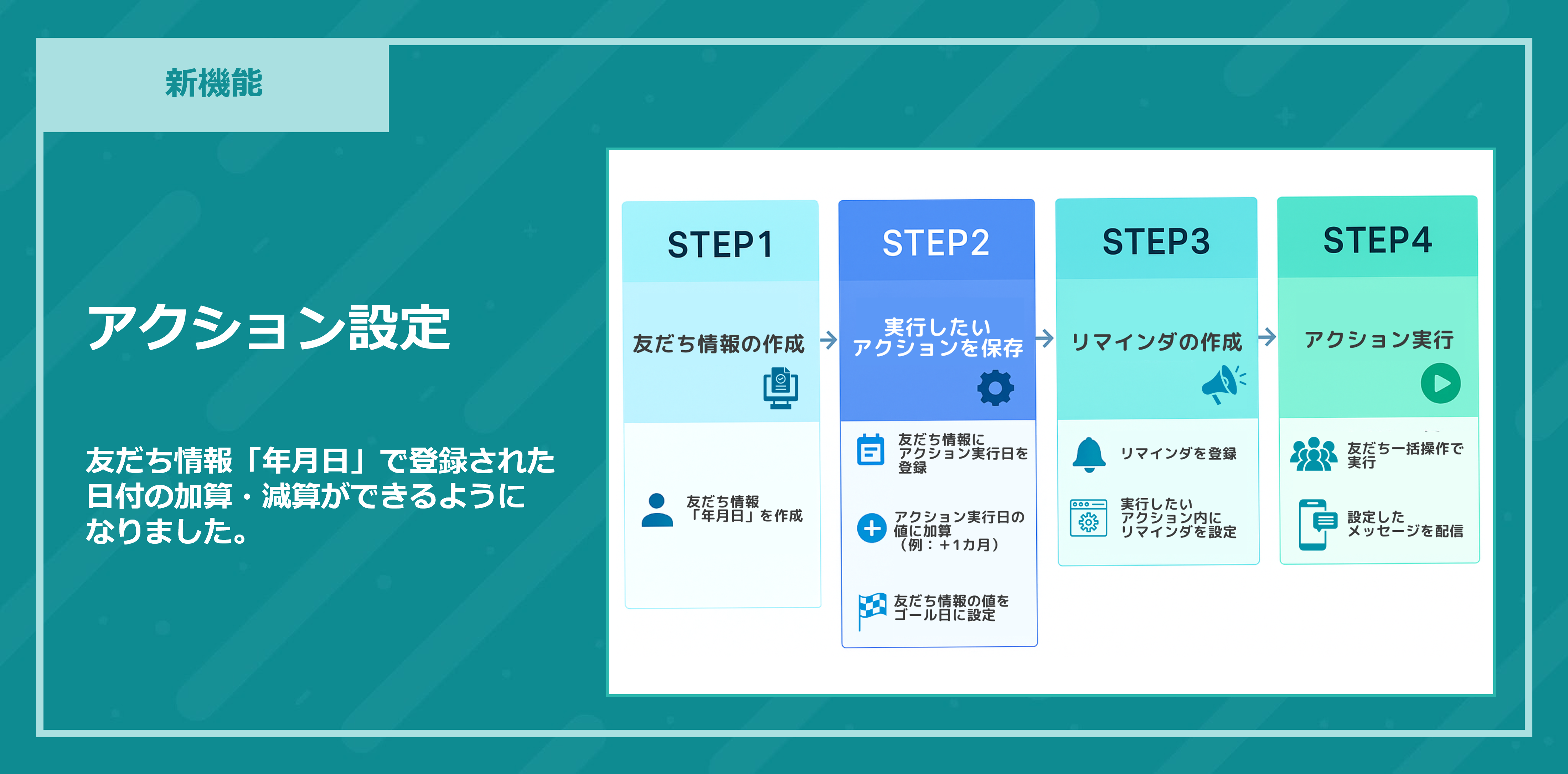 アクション設定の友だち情報操作で「年月日」の加算・減算ができるようになりました。
