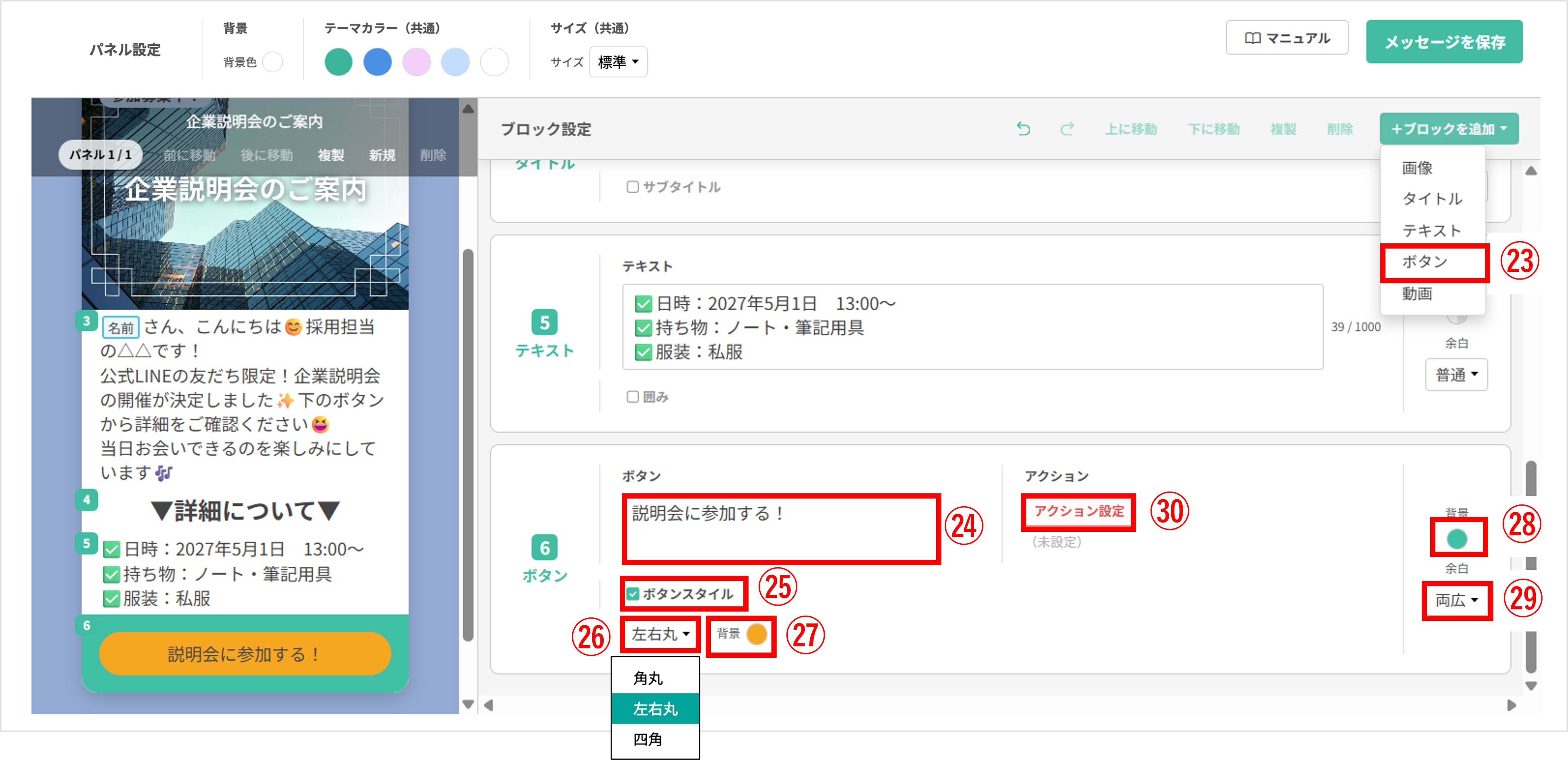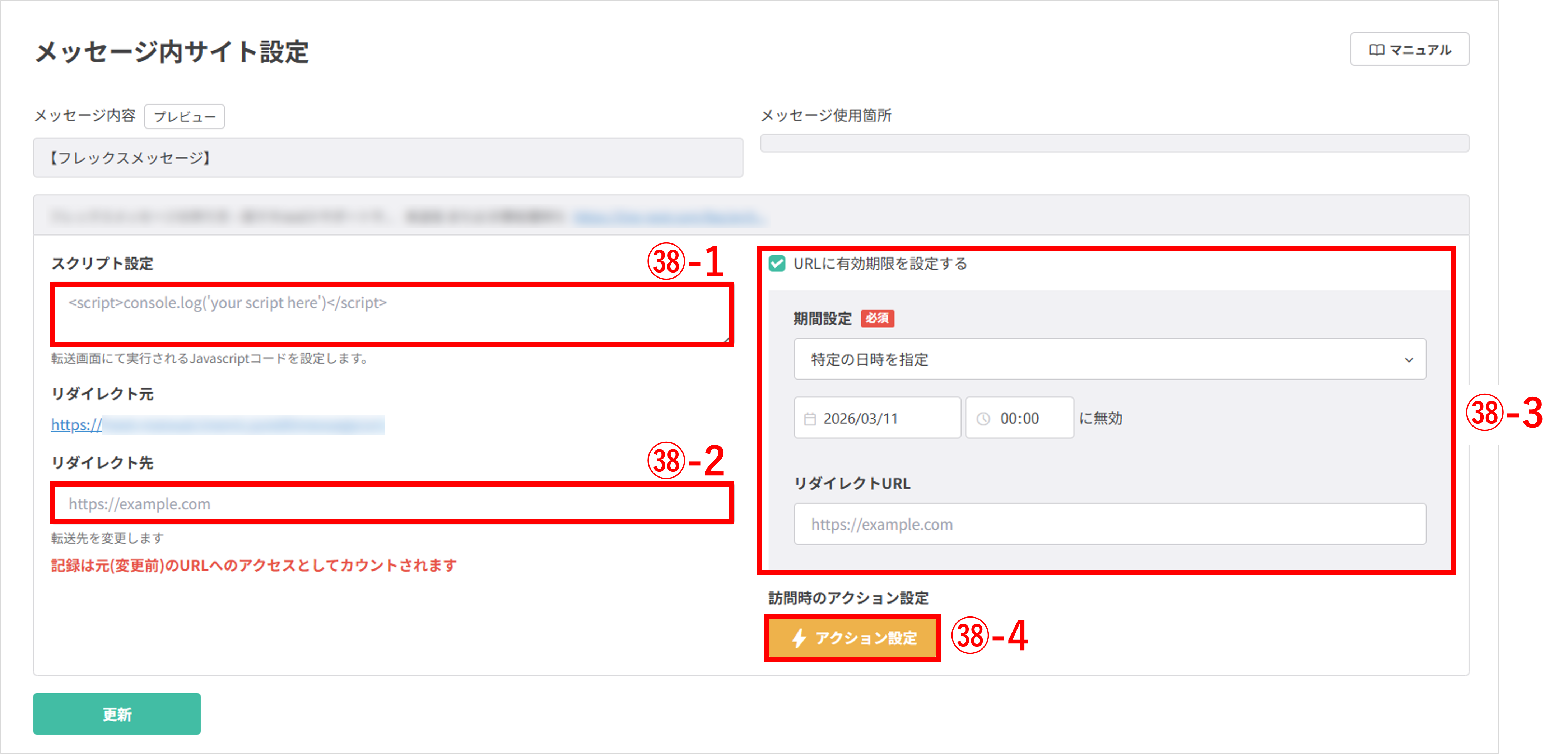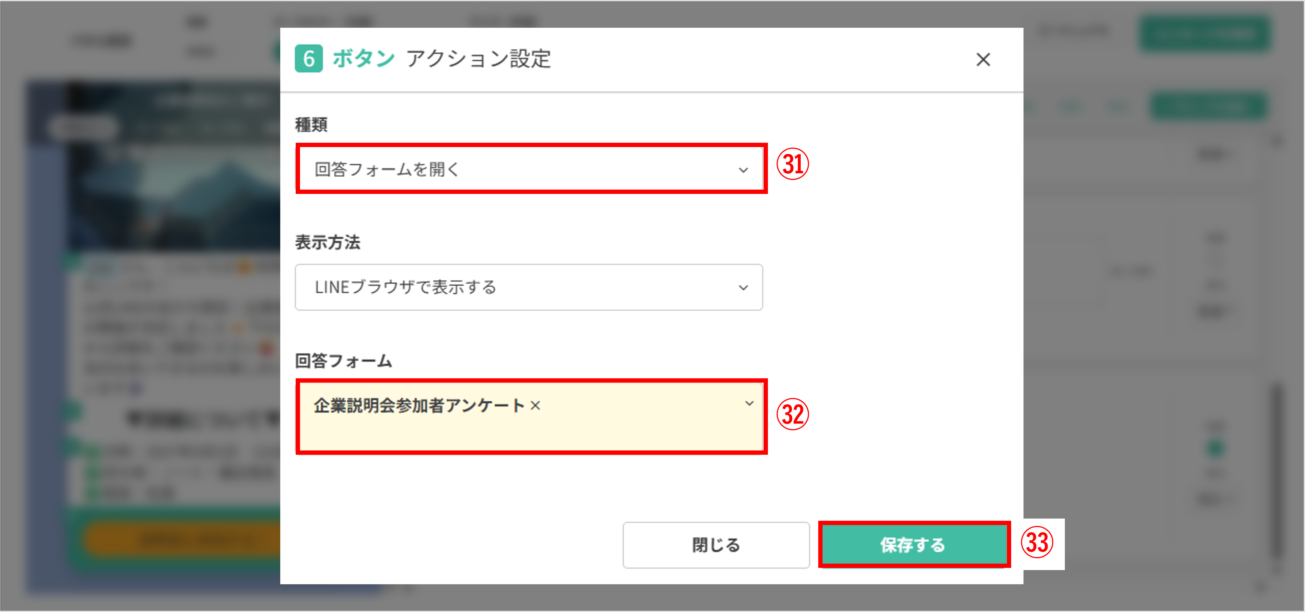 ㊳-4 アクションボタン(任意):URLを踏んだ友だちに対して、さまざまなアクションを設定できます。