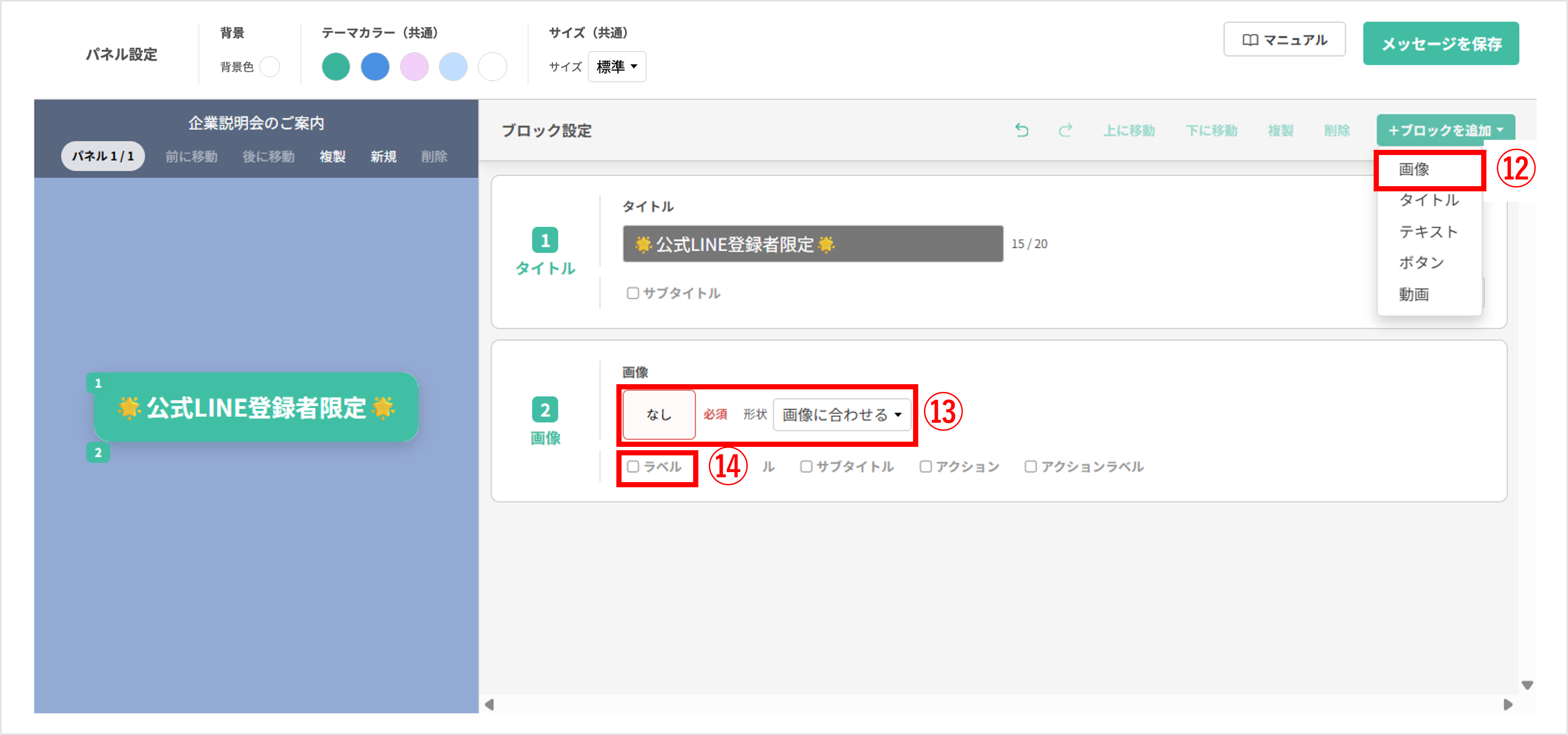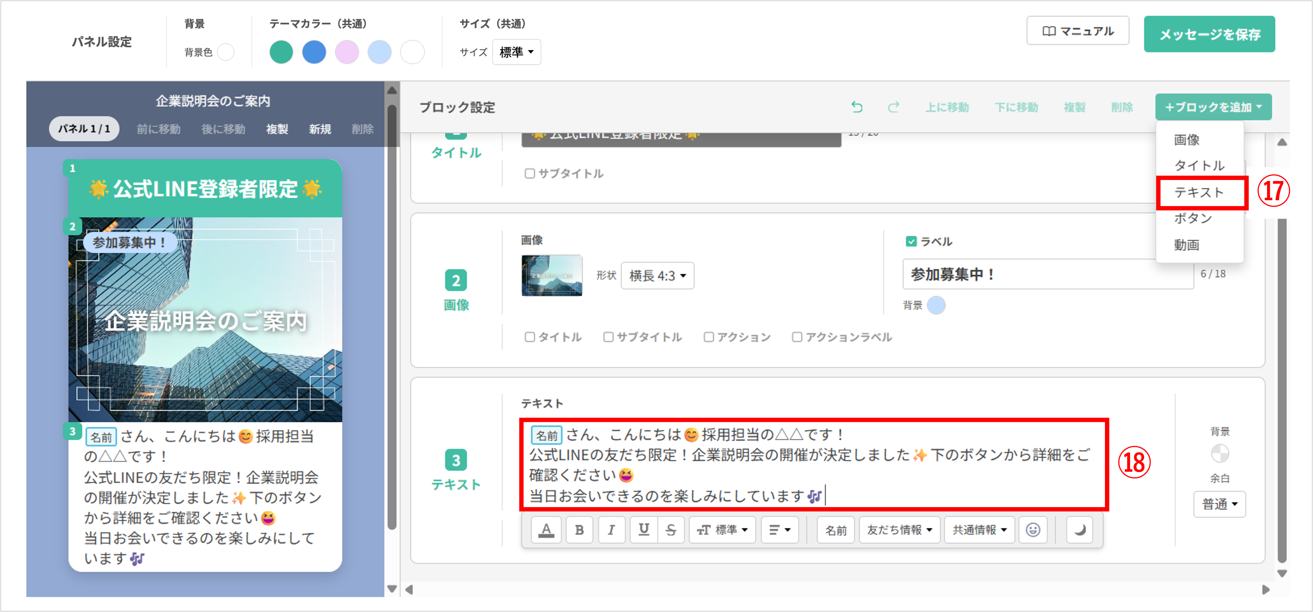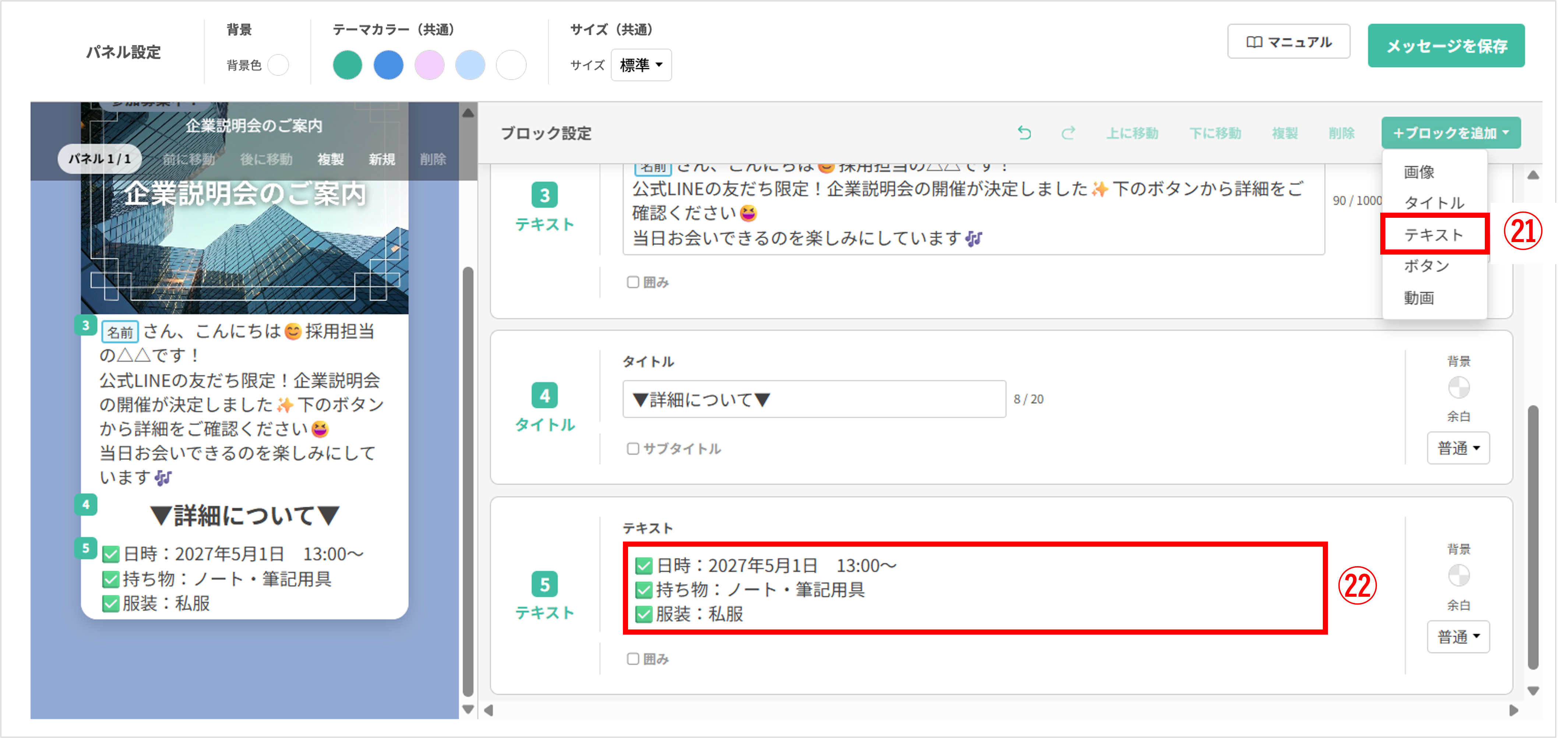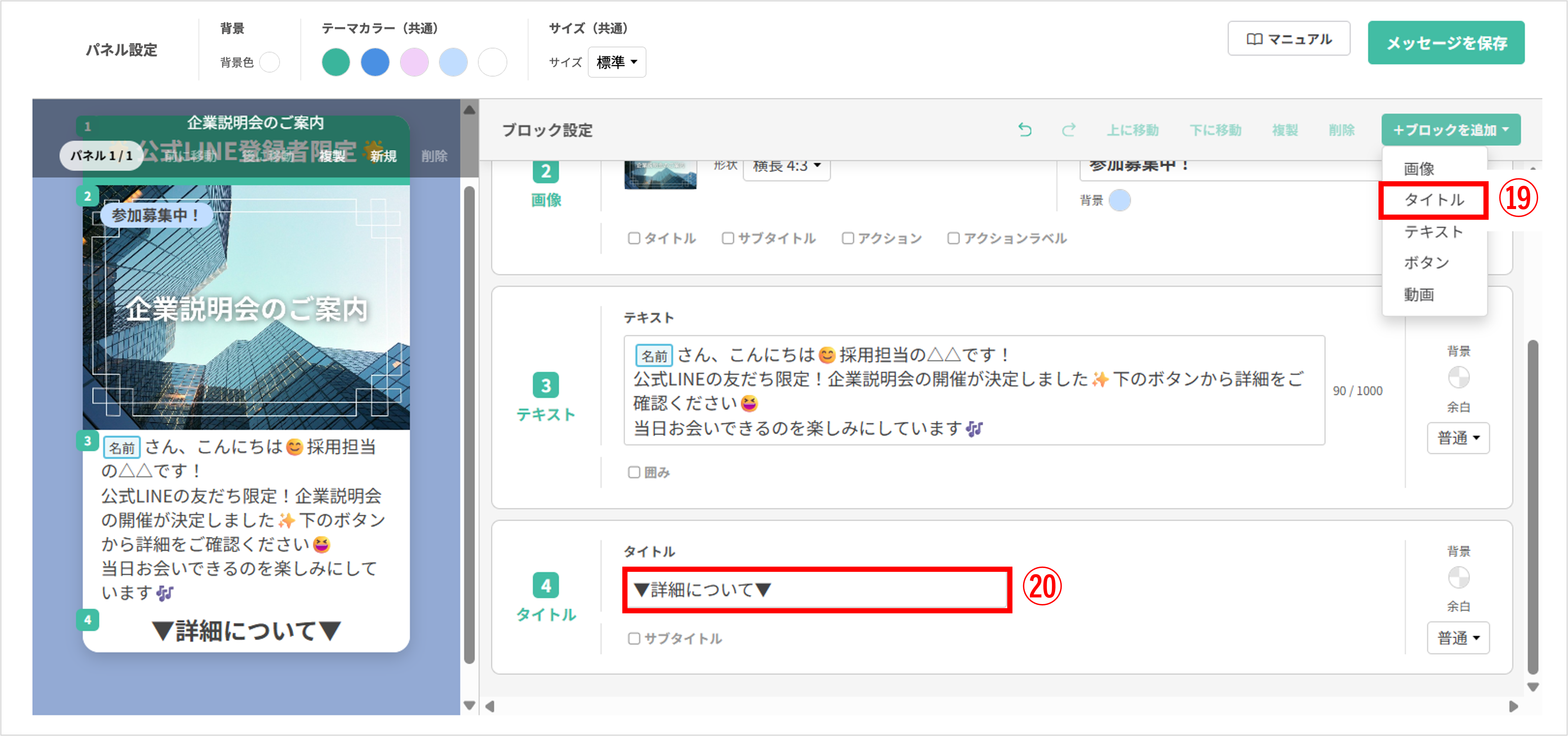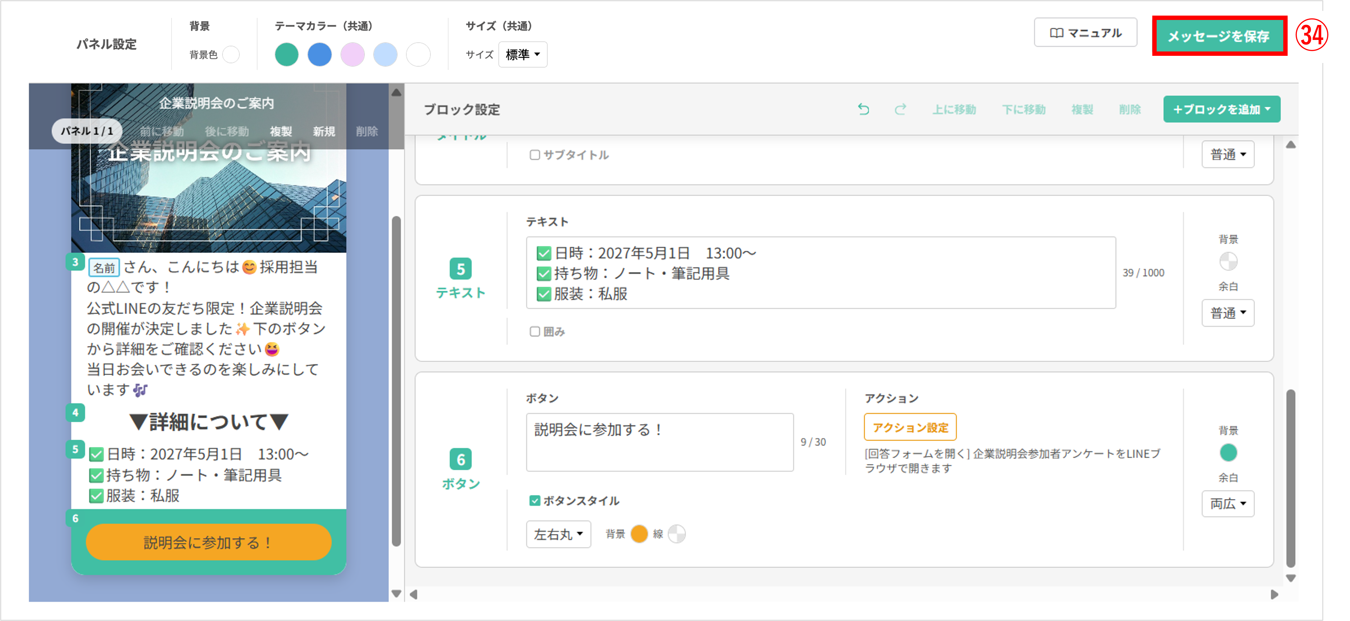 〔メッセージを保存〕ボタンをクリックし、編集したフレックスメッセージを保存します。