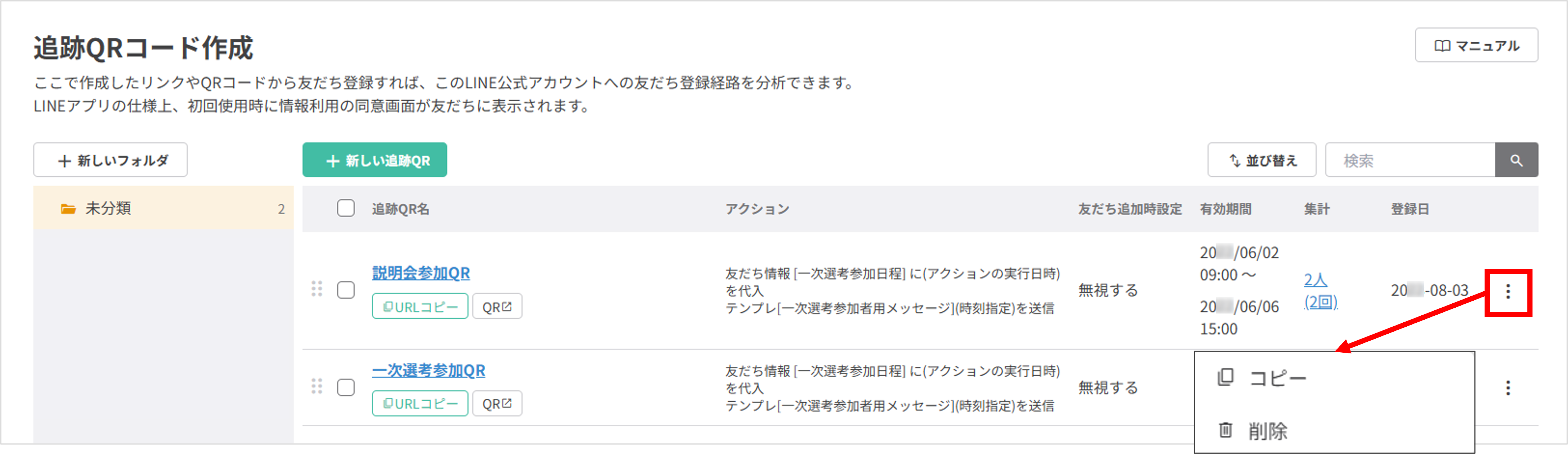追跡QRコードを読み込んだ友だちを確認する方法
