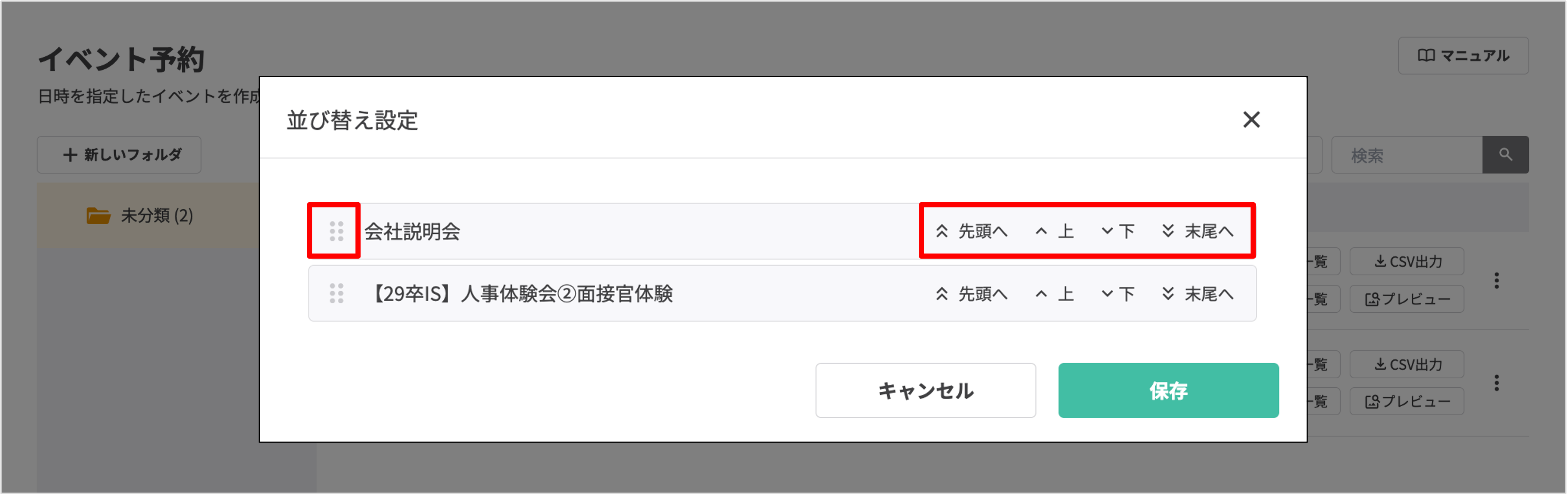 イベント予約を並び替える