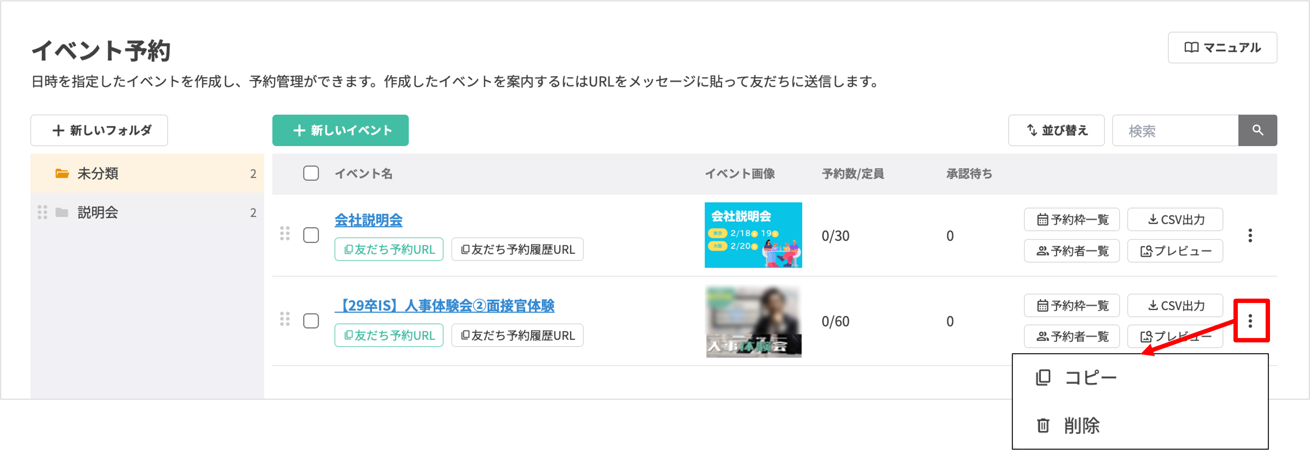 イベント予約画面の使い方