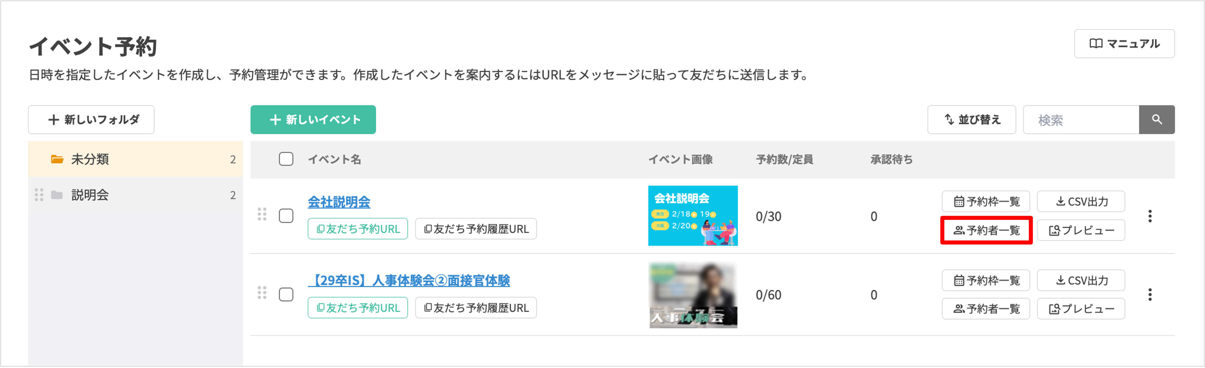 ・イベント予約>予約者一覧画面