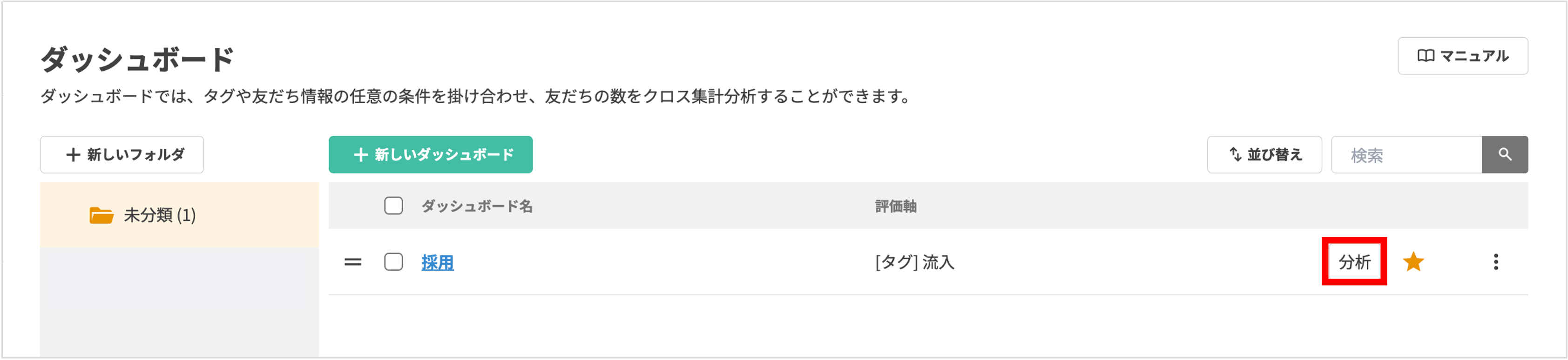 確認したいダッシュボードの〔分析〕ボタンをクリックします。